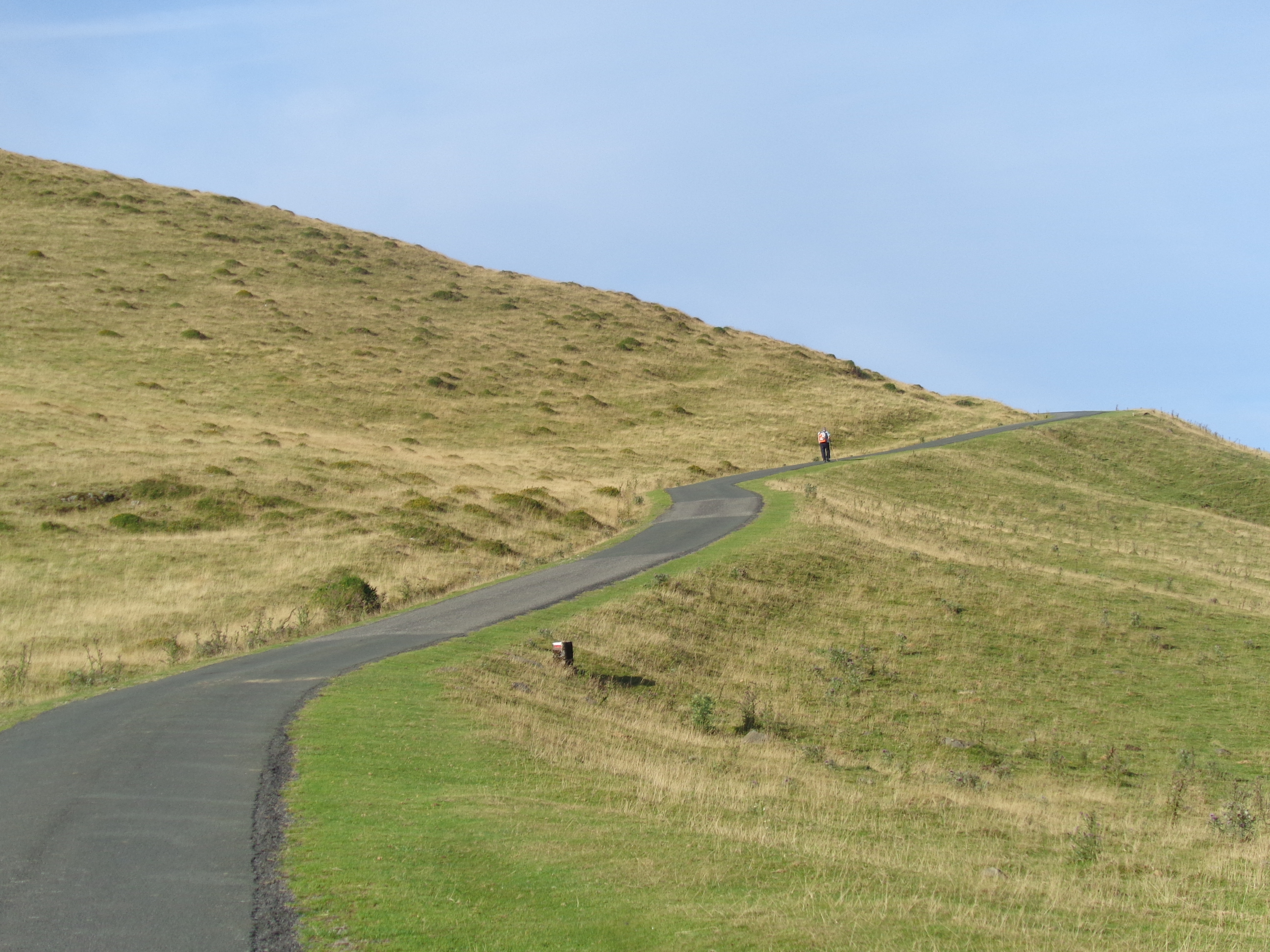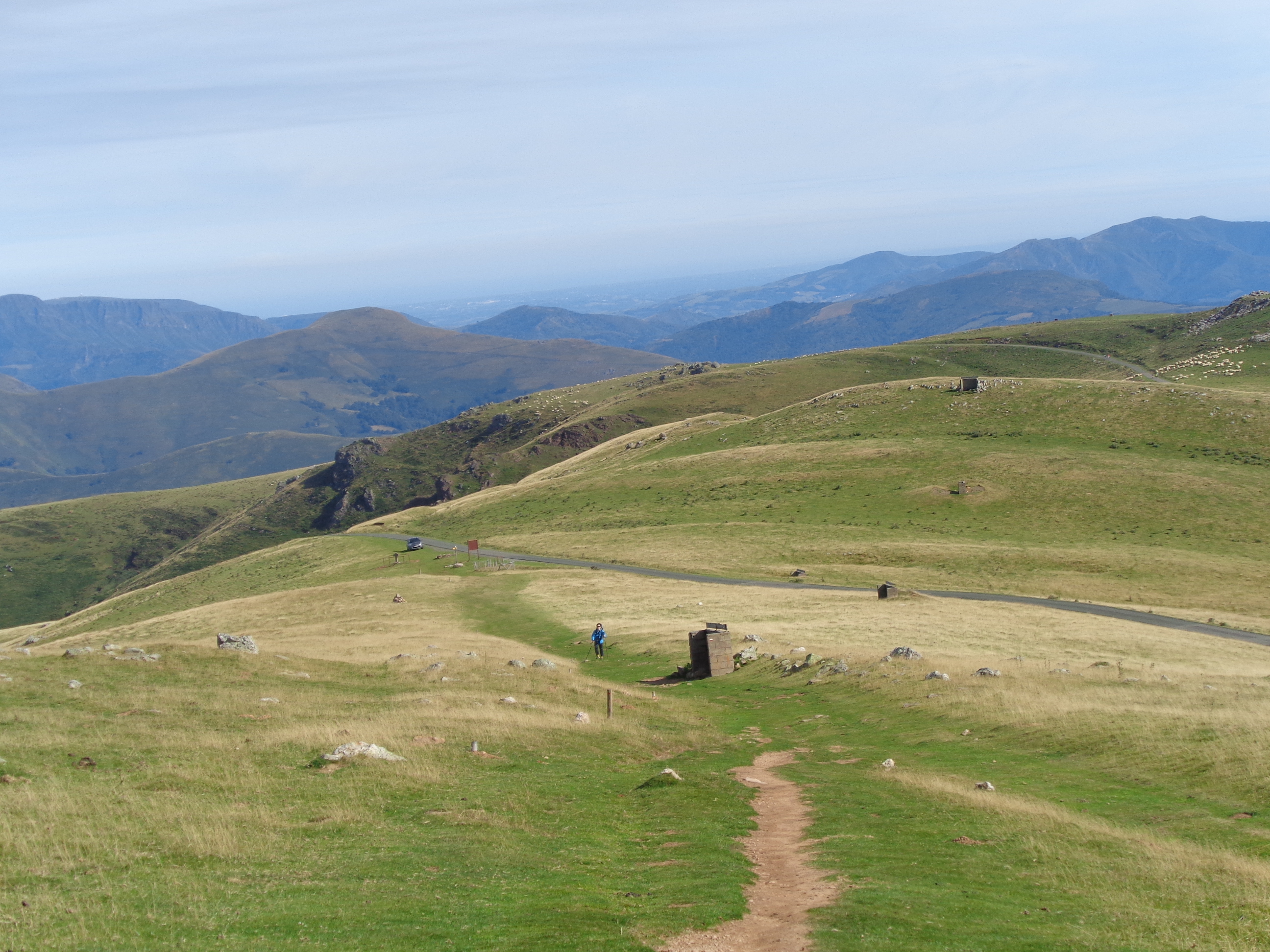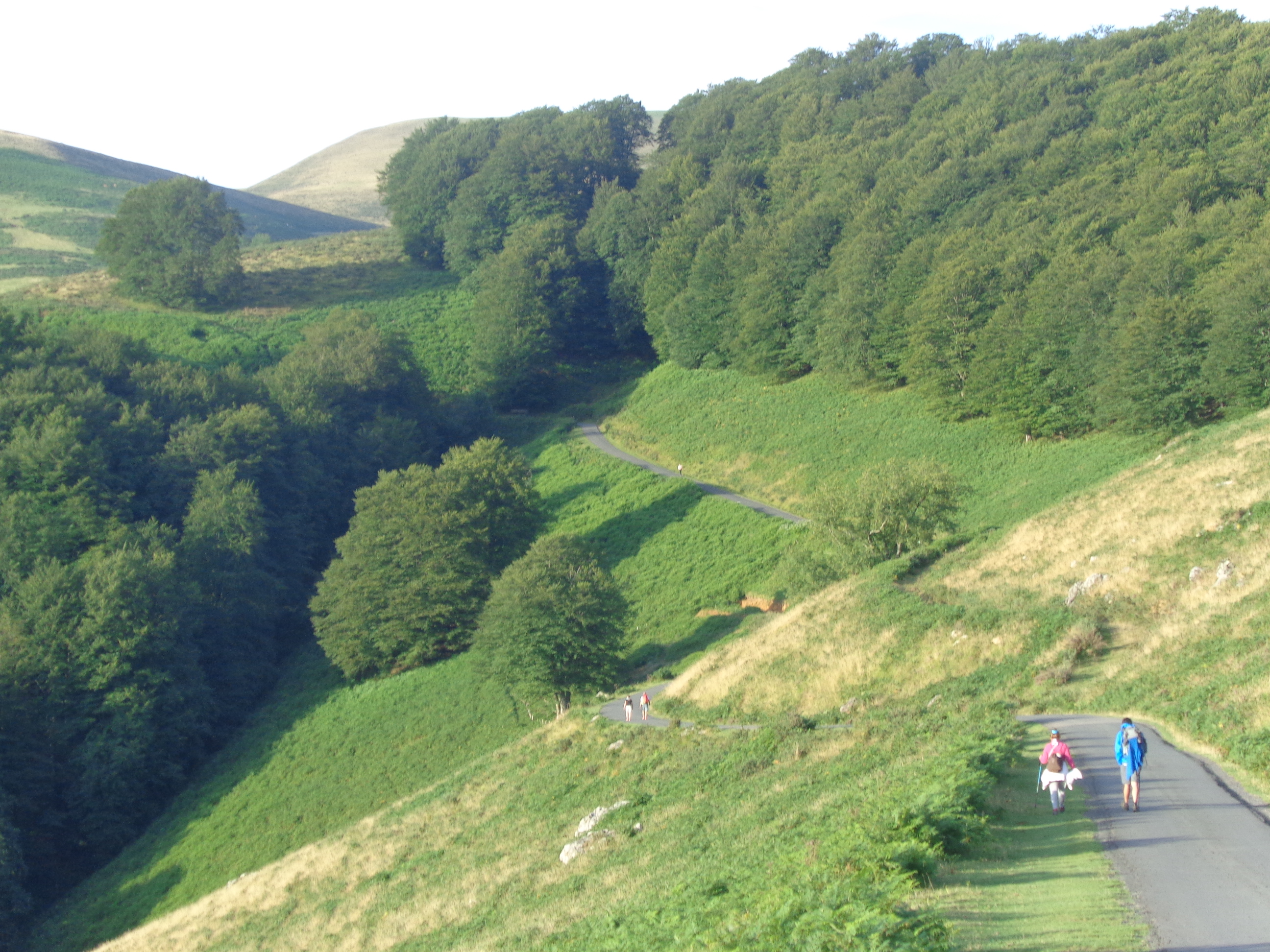 Très peu de pèlerins sur la route ce dimanche 26 juillet... Ici, deux kilomètres environ après le refuge d'Orisson, et à dix kms de St-Jean-Pied-de Port...