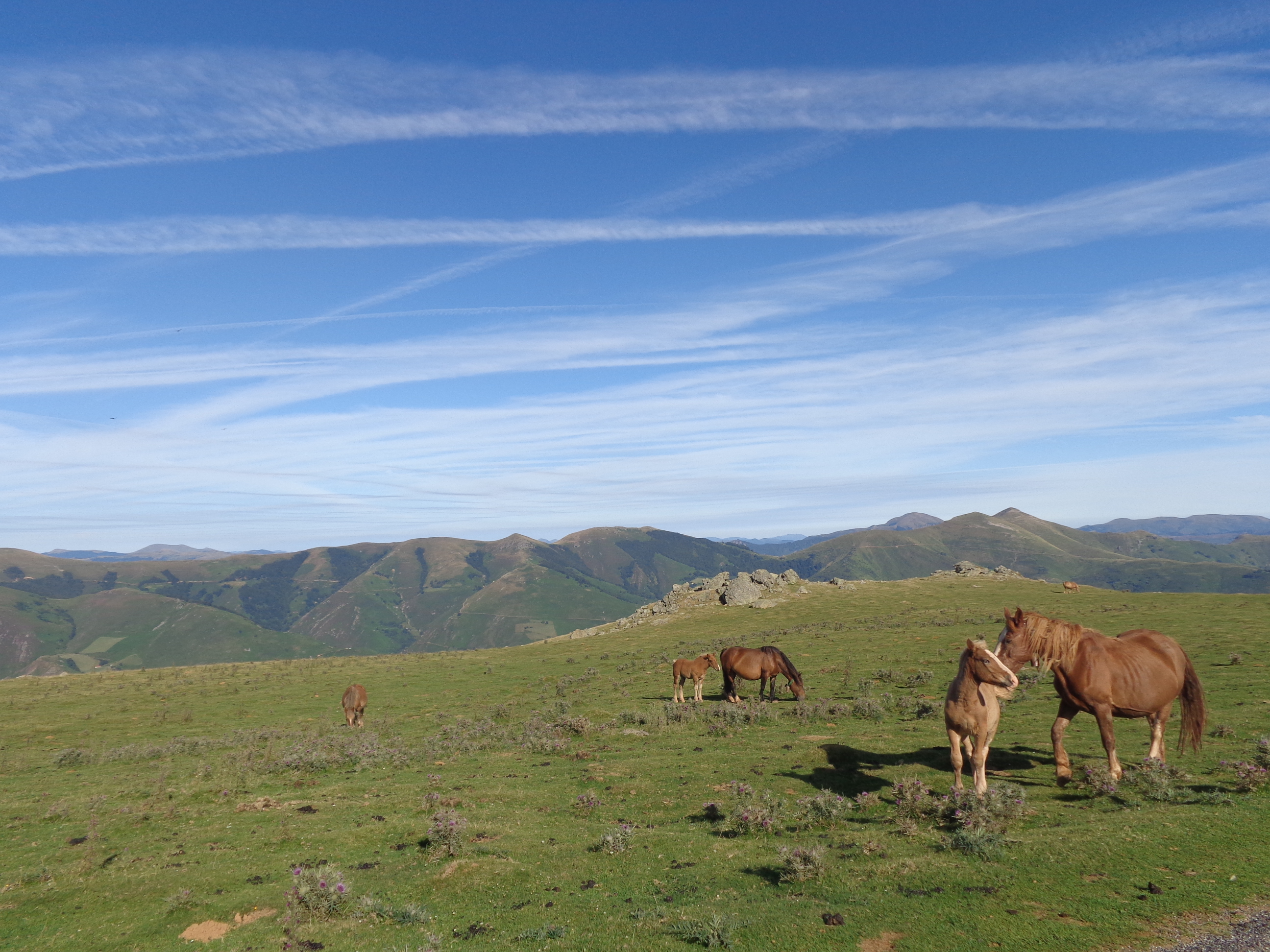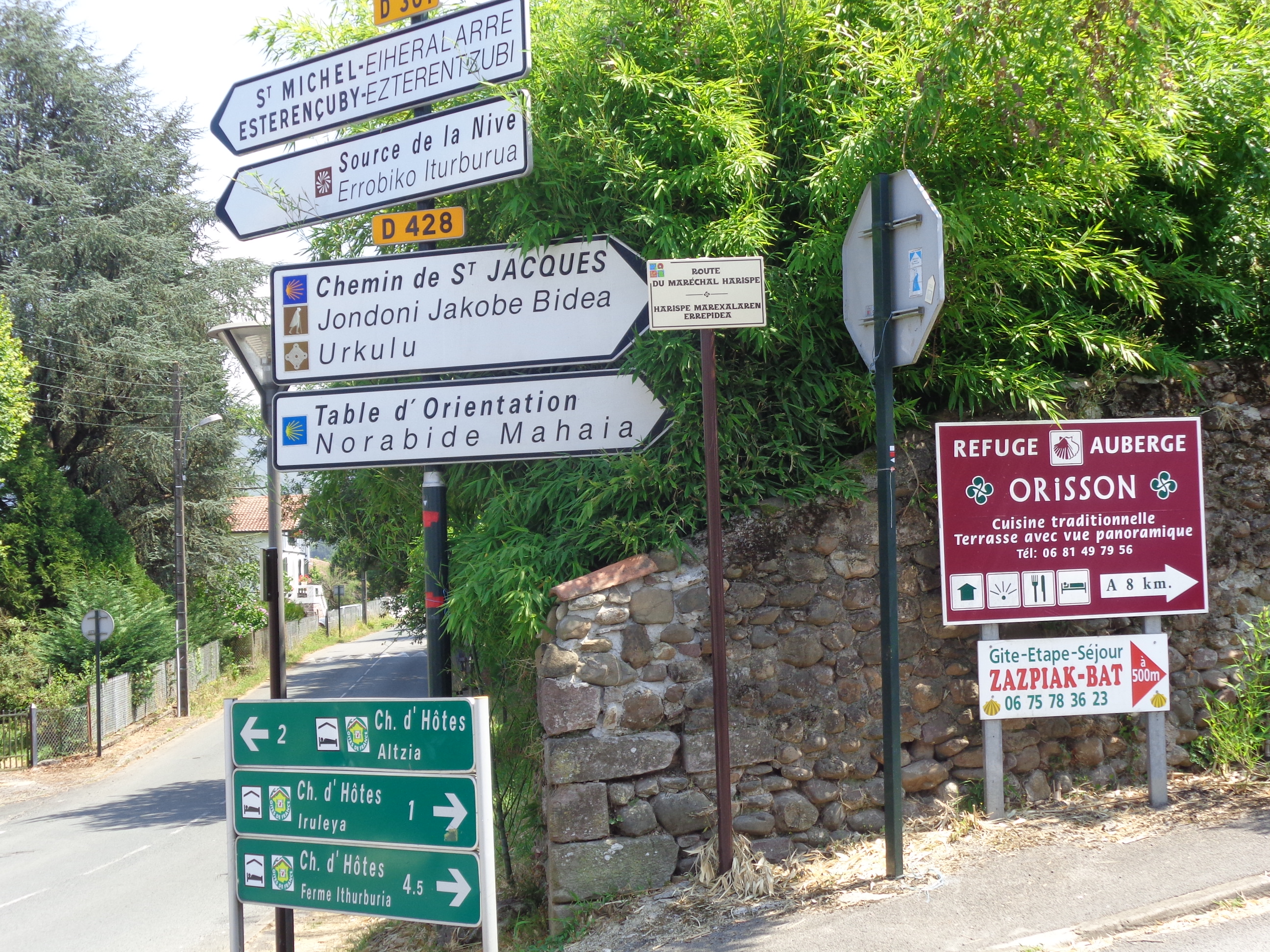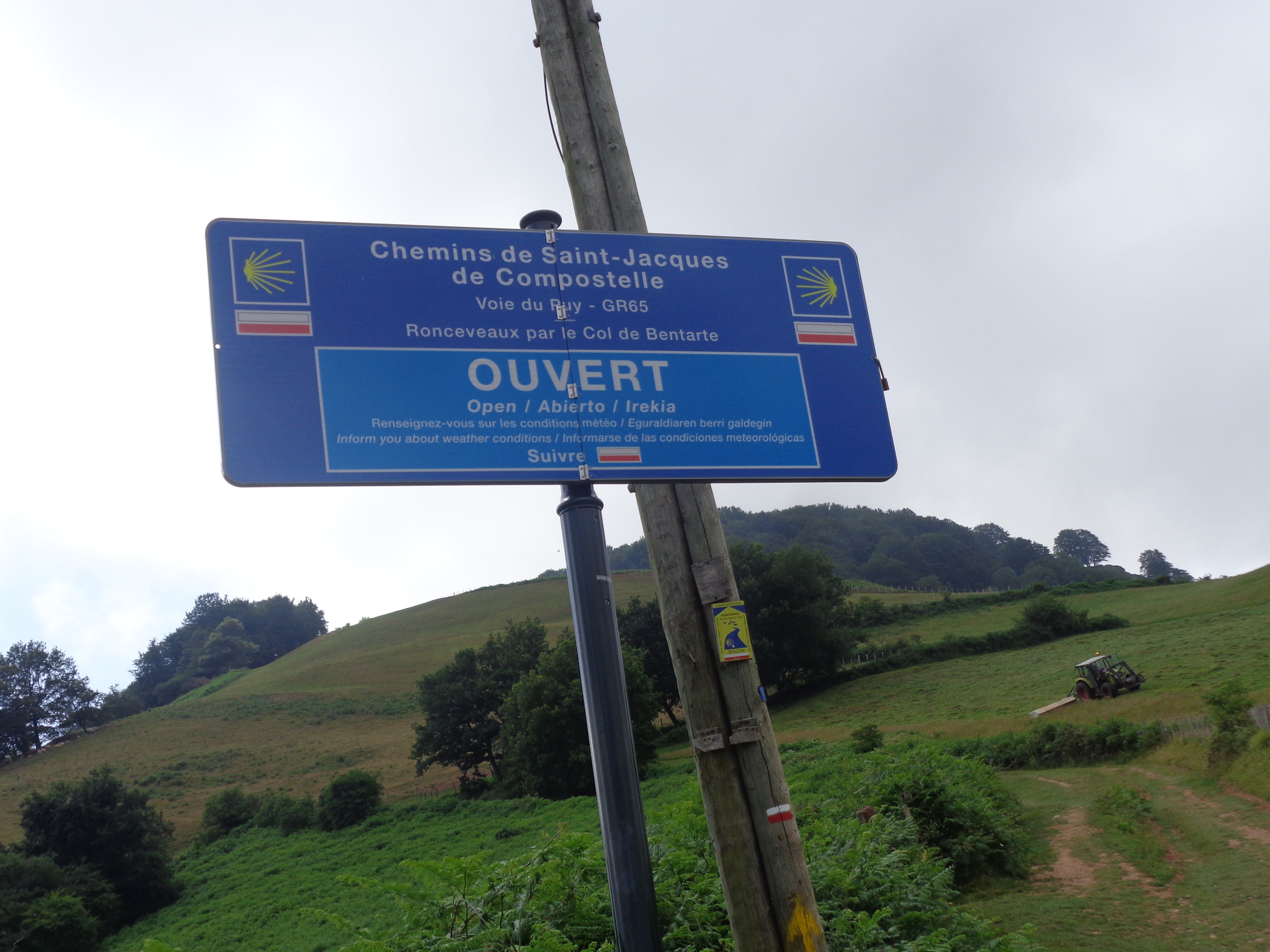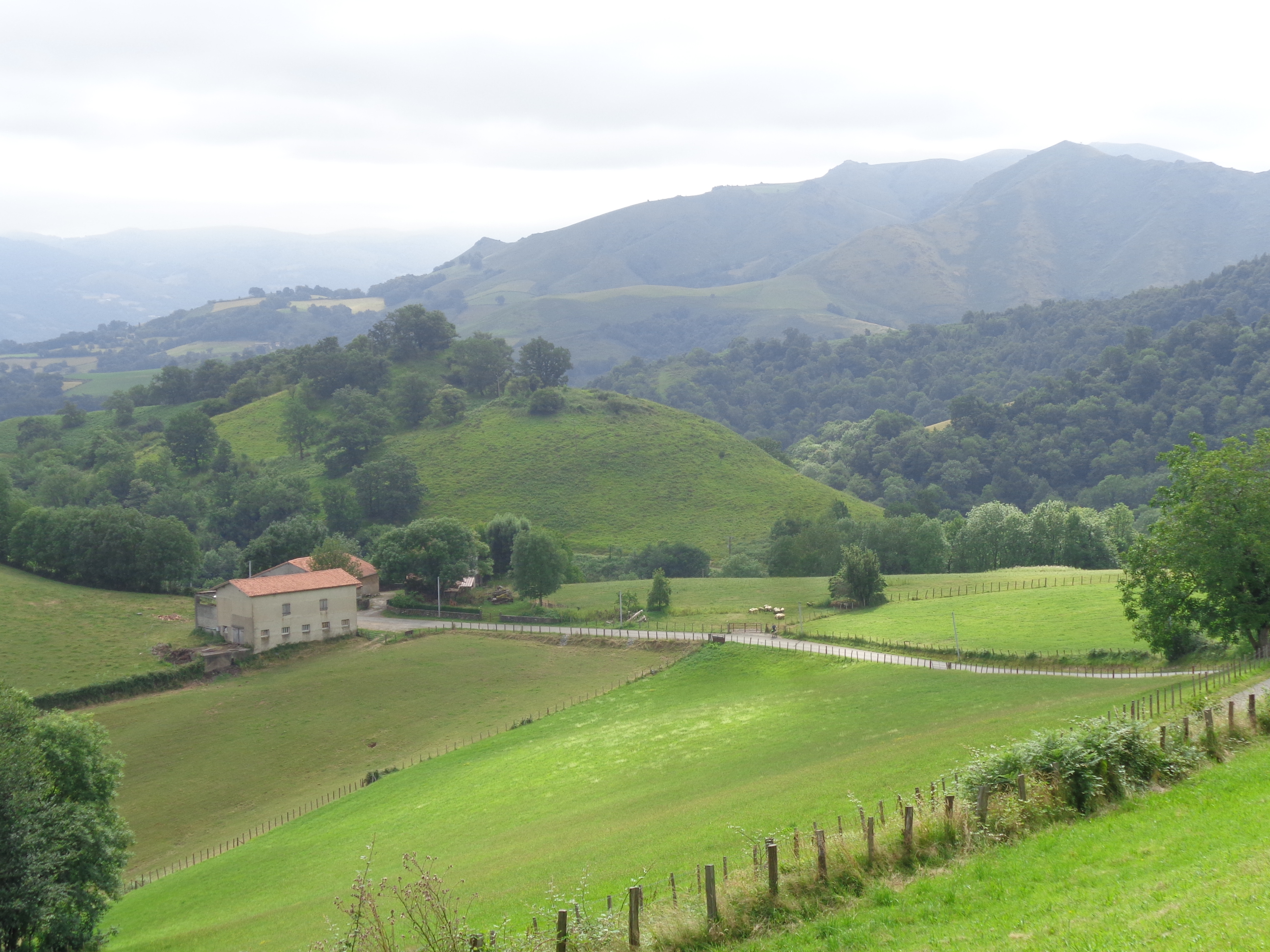 Très peu de pèlerins sur la route ce dimanche 26 juillet... Ici, deux kilomètres environ après le refuge d'Orisson, et à dix kms de St-Jean-Pied-de Port...