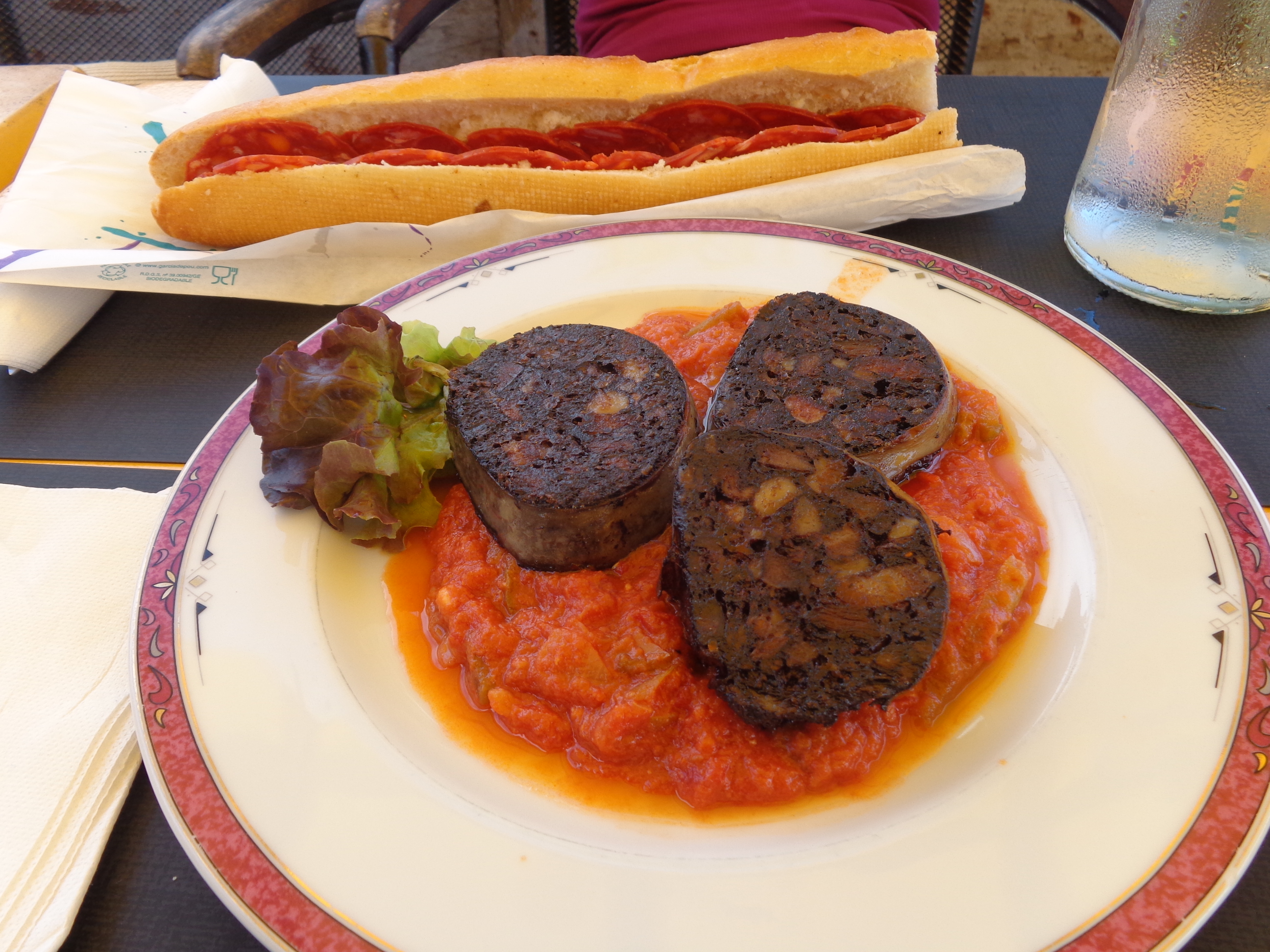Refuge d’Orisson, mardi 14 juillet, et dégustation, ci-dessous, d’un plat de boudin noir accompagné de pipérade et d’un sandwich au chorizo…