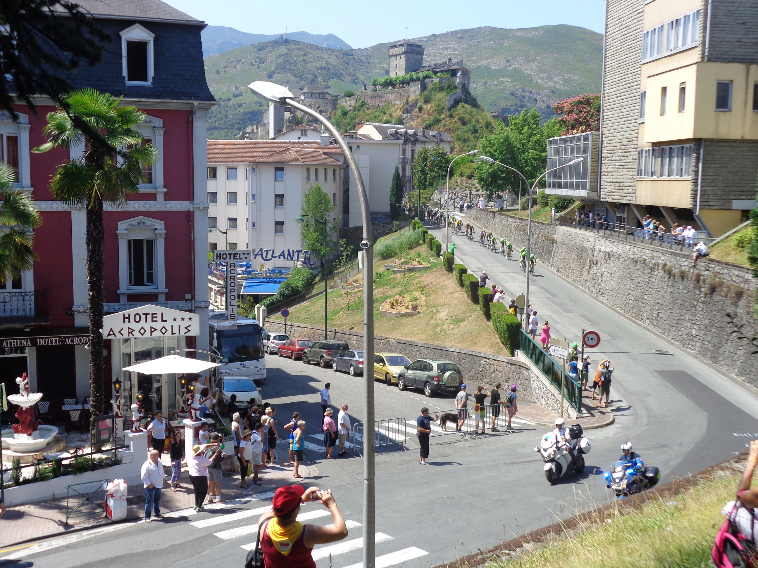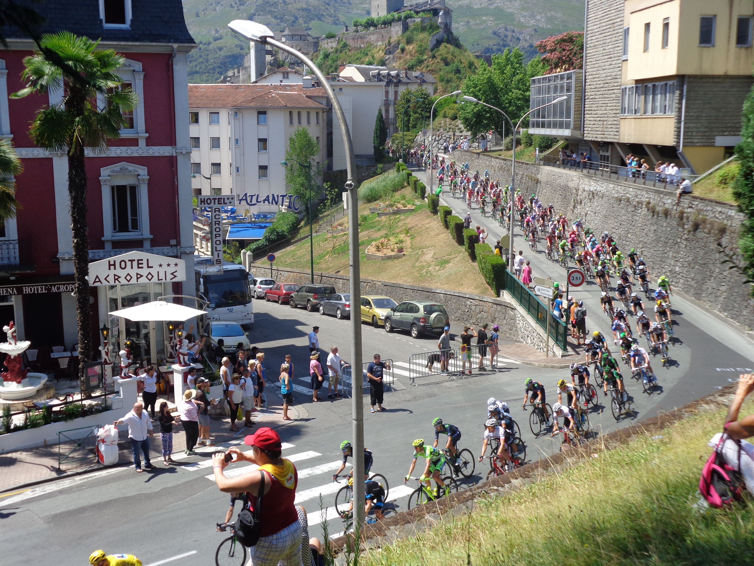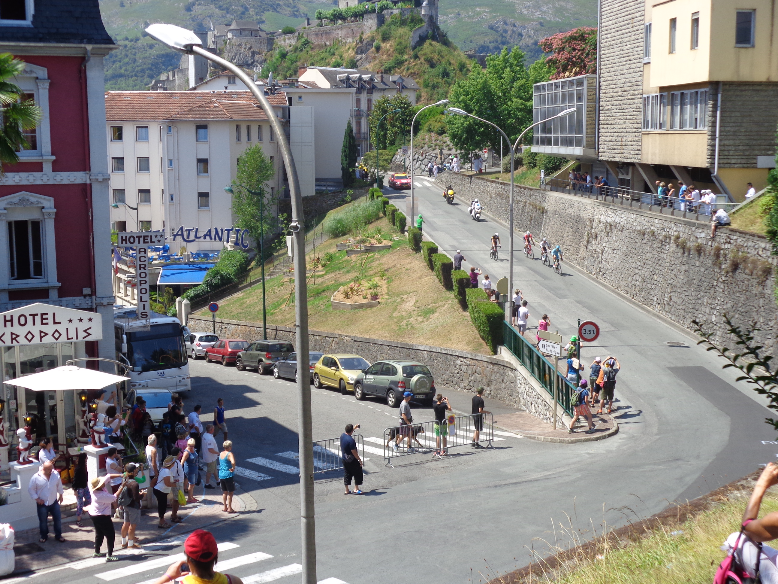 Les coureurs sont passés en un éclair dans les rues du centre-ville – le défilé du peloton n’a duré environ que 50 secondes! – à 13 heures pile, quelques minutes seulement avant le départ de mon train de 13h20 pour Saint-Jean-Pied-de-Port!!