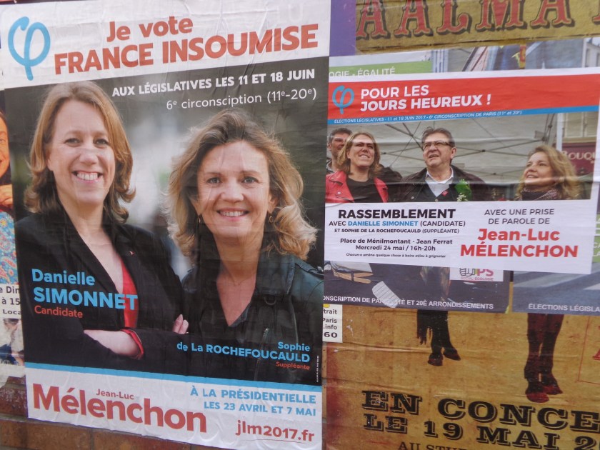 Affiches pour les élections législatives dans une rue de Ménilmontant