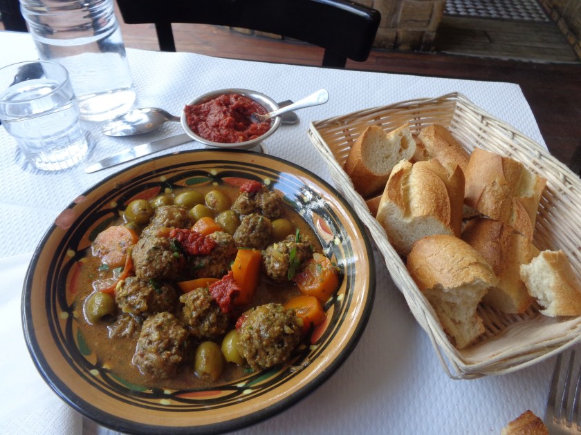 Plat de boulettes accompagnées d’olives, de carottes et de harisa, restaurant Le Taïs, Ménilmontant. Une de mes cantines dans le nord-est de Paris.