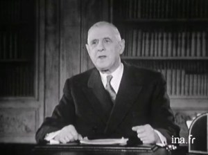 On voyait le général De Gaulle à la télévision, le visage sombre.