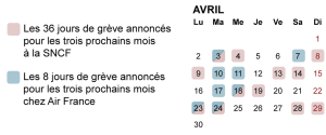 Calendrier des jours de grève dans le secteur des transports en France, en avril 2018