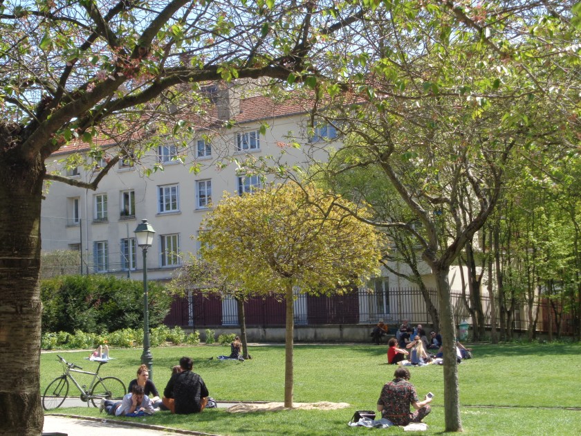 Le square des Saint-Simoniens à Ménilmontant, un de mes parcs préférés à Paris. Ci-dessous, un café, rue de Ménilmontant, le mercredi 18 avril.