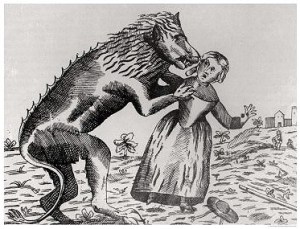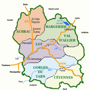 J’ai pu ainsi parcourir en partie l’an dernier des régions sauvages, splendides, situées un peu hors du temps – la Margeride, le Gévaudan, l’Aubrac, la vallée du Lot, le Rouergue – territoires isolés où foisonnent encore une multitude de mythes et de récits, récits parfois terrifiants, comme celui de la « Bête du Gévaudan », un loup féroce qui au milieu du 18è siècle terrorisait et dévorait les villageois dans un secteur compris à présent dans le département de la Lozère…