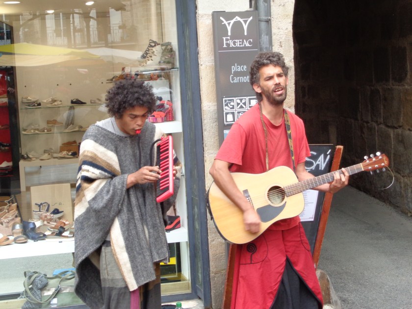 Jour de marché (et musiciens ci-dessous) le samedi 19 mai 2018 dans la vieille ville de Figeac (Lot) où je me suis arrêté presqu’une semaine après avoir rejoint Conques l’an dernier. Immense plaisir d’écouter et de savourer la langue des riverains dans les villages que traverse le GR 65…