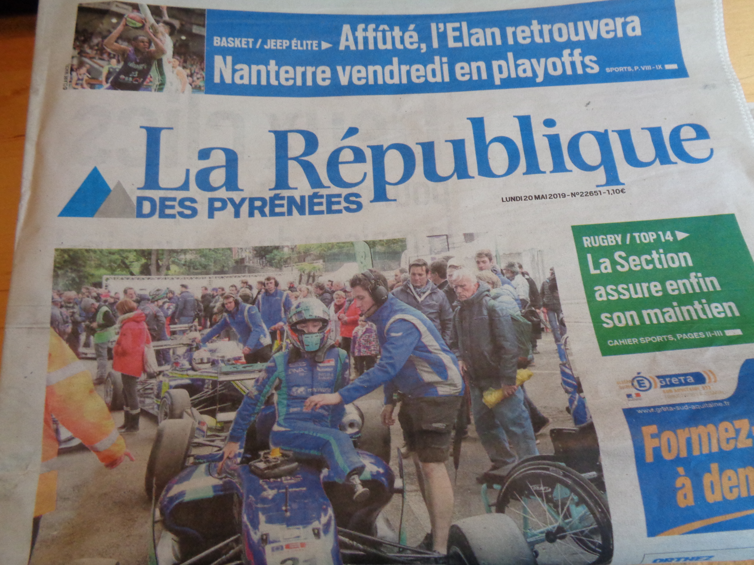 … vers 13h30, le jeudi 16 mai, arrivée, comme prévu, à Nogaro, village paisible d’environ 2000 habitants…