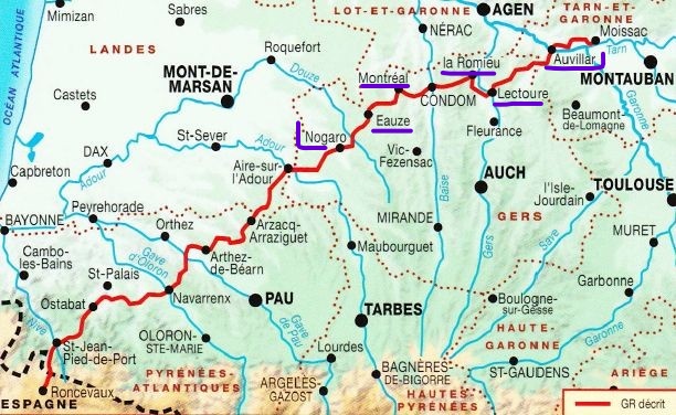 Ensuite, 175 kms environ entre Nogaro et Saint-Jean-Pied-de-Port. 9 autres étapes.