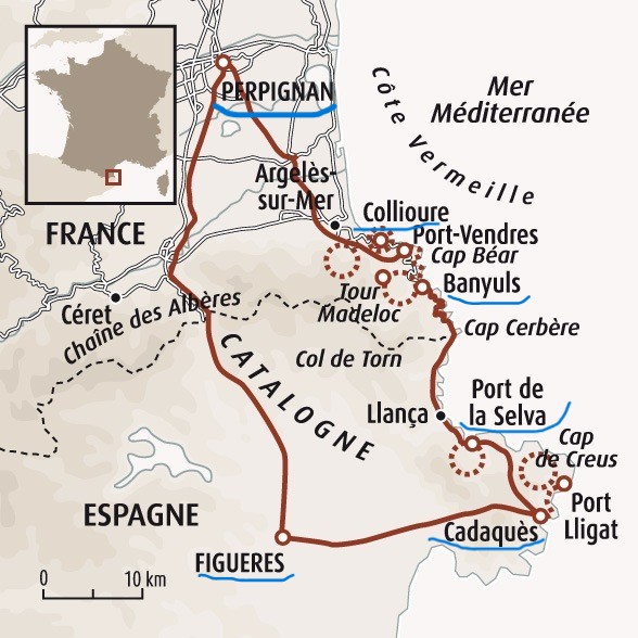 La première (6 jours de marche) m’emmènera vers Collioure puis, en franchissant les Pyrénées, vers l’Espagne.