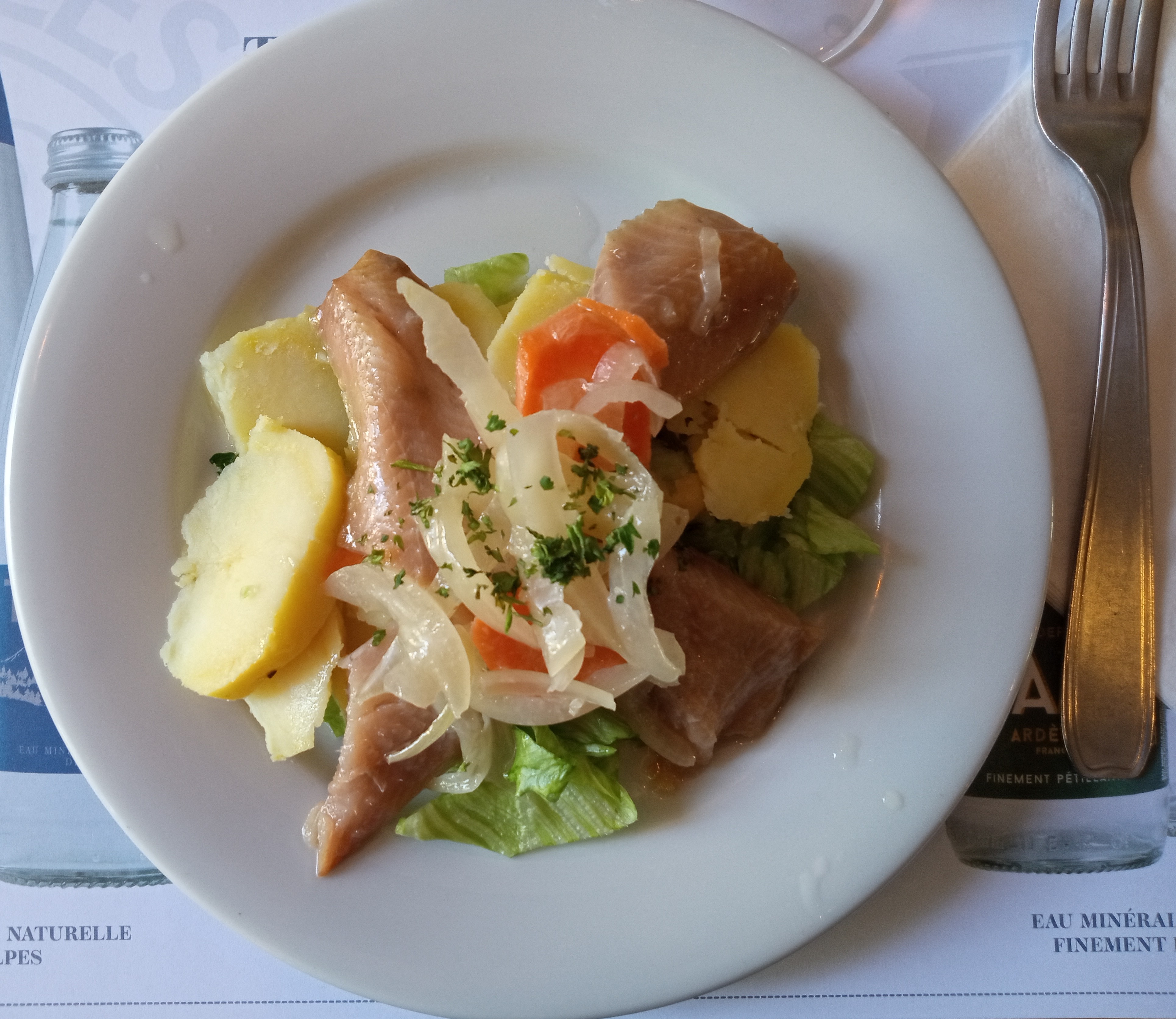 Hareng fumé à l’huile et pommes de terres, boulevard de la Bastille, Paris 12è, le mercredi 14 mai.
