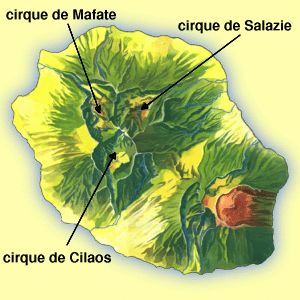 … des trois « cirques » que compte La Réunion. Le Piton des Neiges est exactement au centre des 3 cirques.