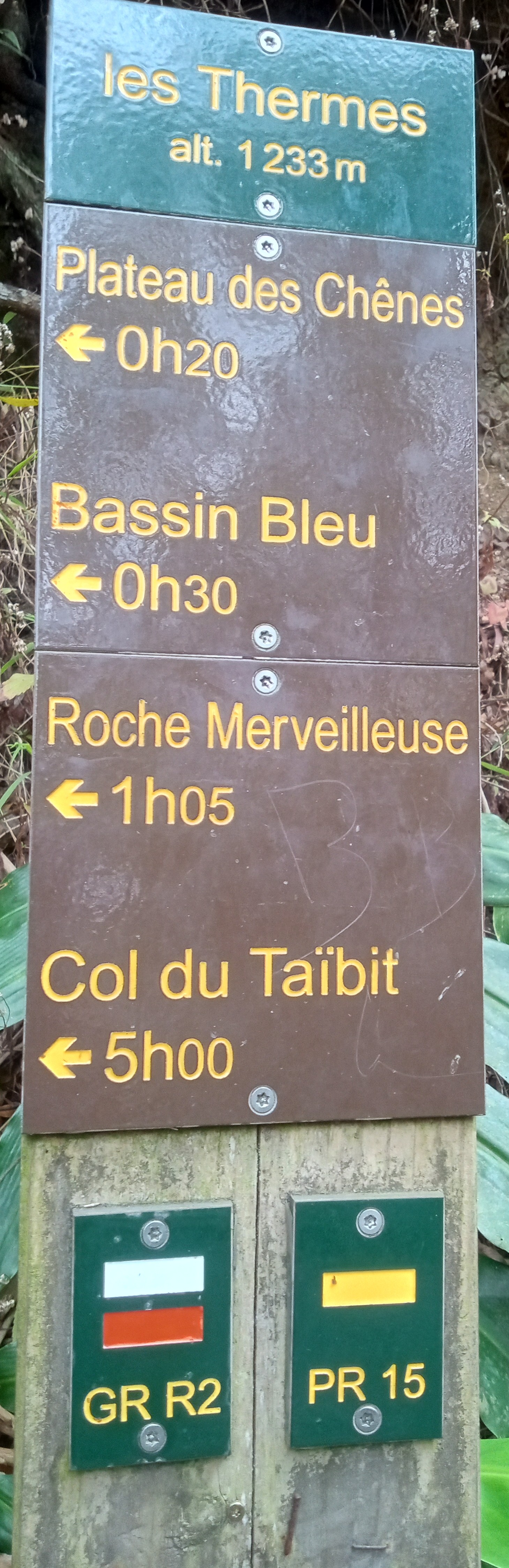 Quelques itinéraires de randonnées aux alentours de Cilaos. Point de départ: l’édifice des Thermes, situé en haut du village. Nous avons facilement rejoint le premier jour Bassin Bleu et La Roche merveilleuse…