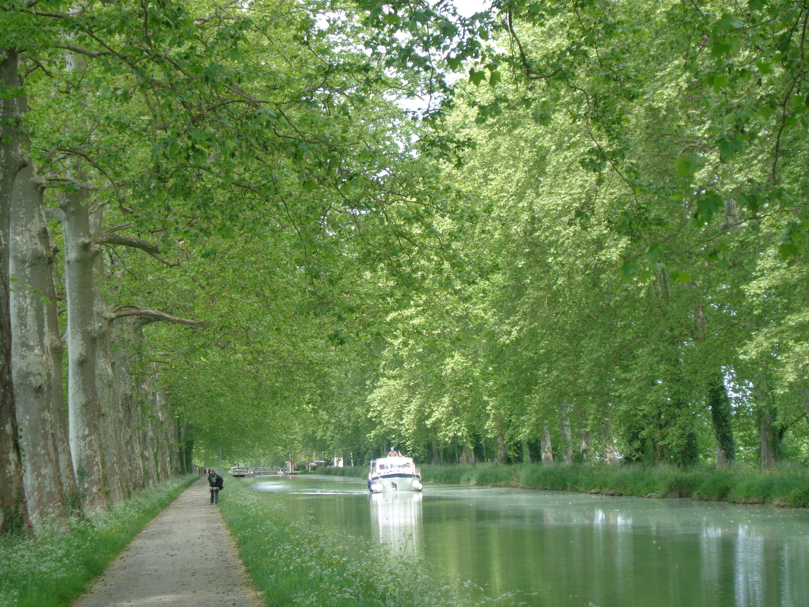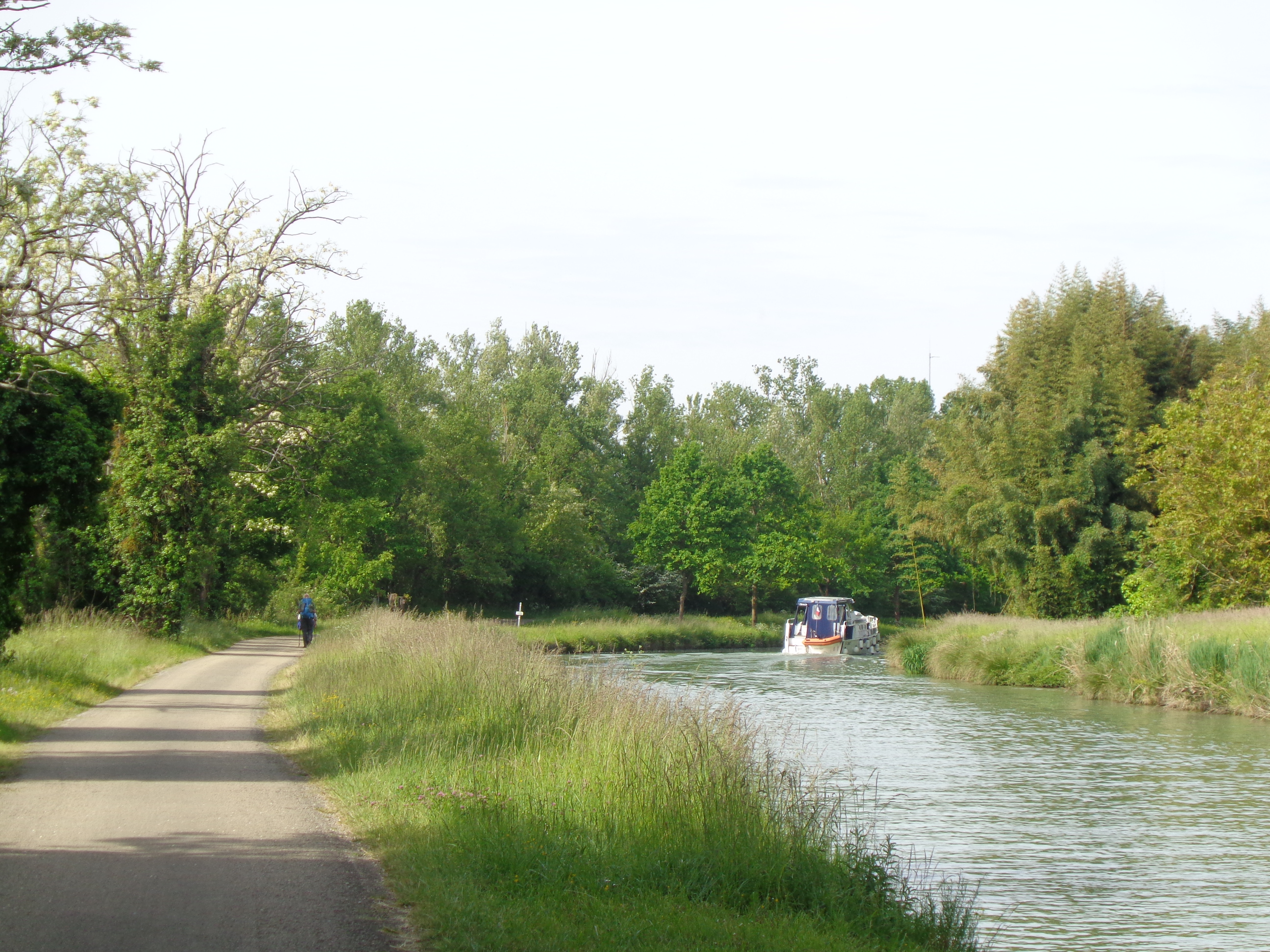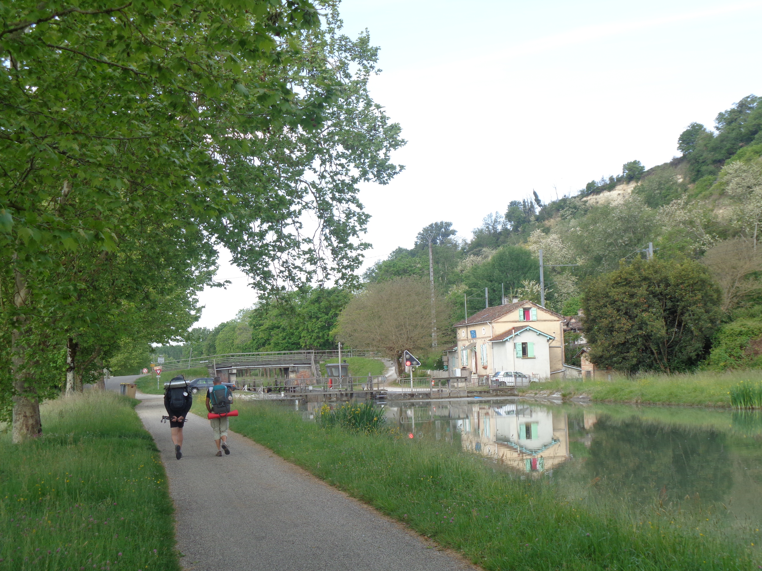 Le mardi 7 mai – dernière étape avant ma journée de repos à Auvillar – j’ai emprunté, depuis Moissac, pendant une quinzaine de kilomètres, le superbe Canal des Deux Mers (qui relie sur 800 kms la Méditerranée à l’Atlantique)…