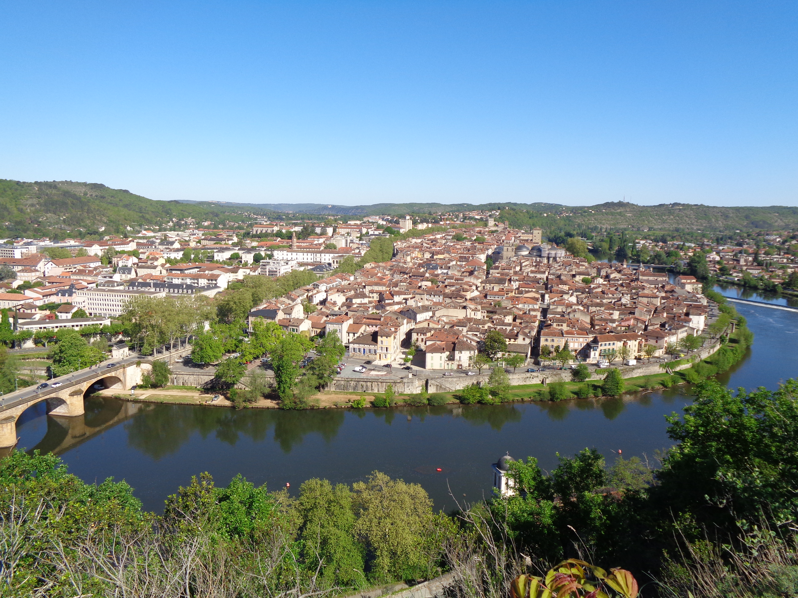 La ville, qui compte environ 20 000 habitants, est nichée dans une boucle du Lot, dans un grand écrin de verdure. Le lieu est exceptionnel. Les Cadurciens et les Cadurciennes, c’est ainsi qu’on appelle les riverains, jouissent ici d’un environnement et d’un cadre de vie remarquables.
