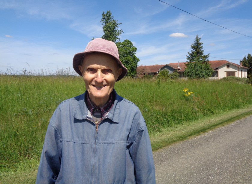 J’ai passé les deux jours suivants, entre Aube Nouvelle et Moissac (20 kms) et entre Moissac et Auvillar (21 kms) sous un grand ciel bleu… Sur la route, d’anciens agriculteurs…