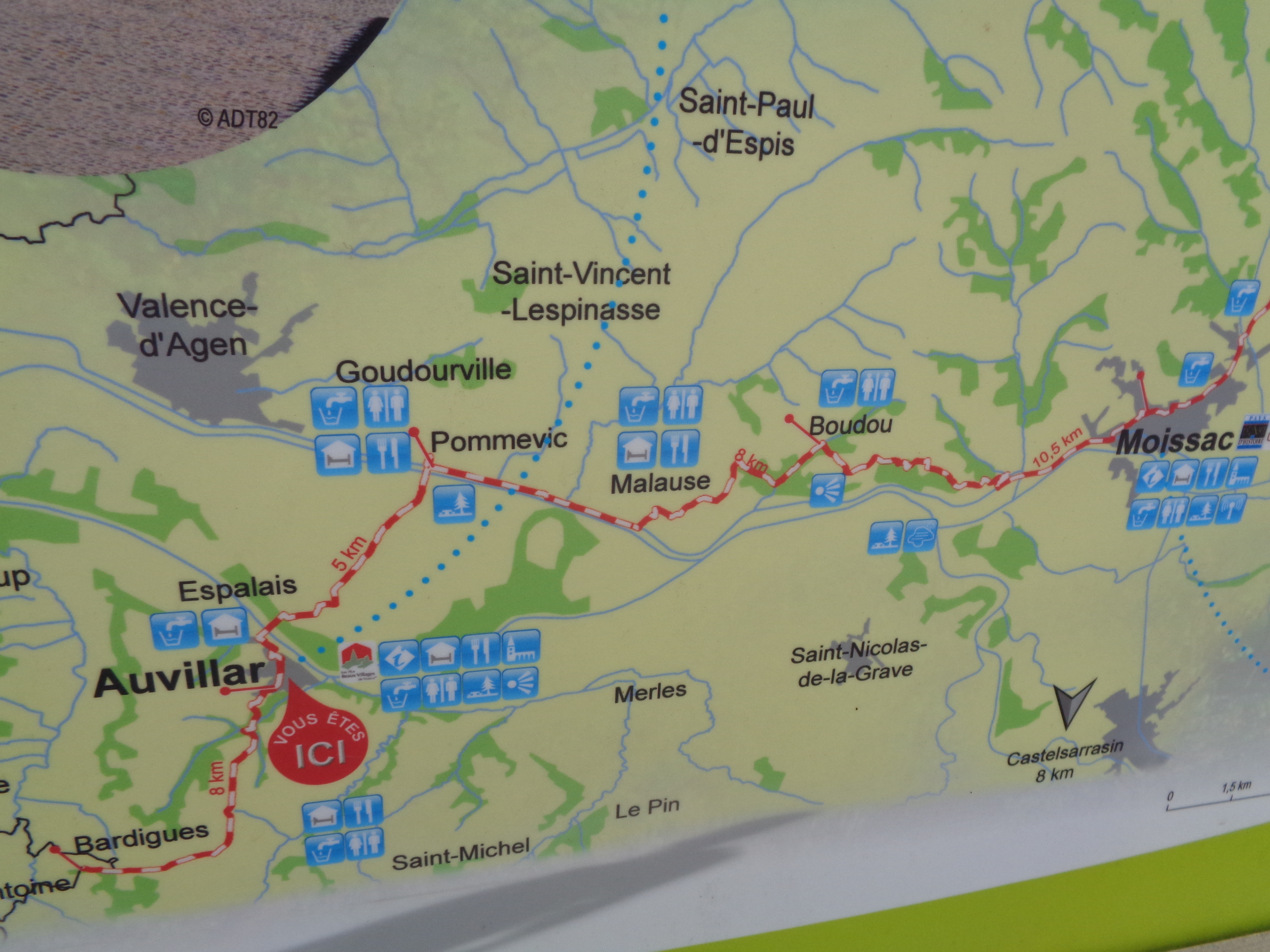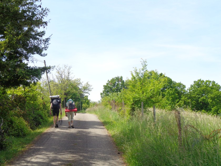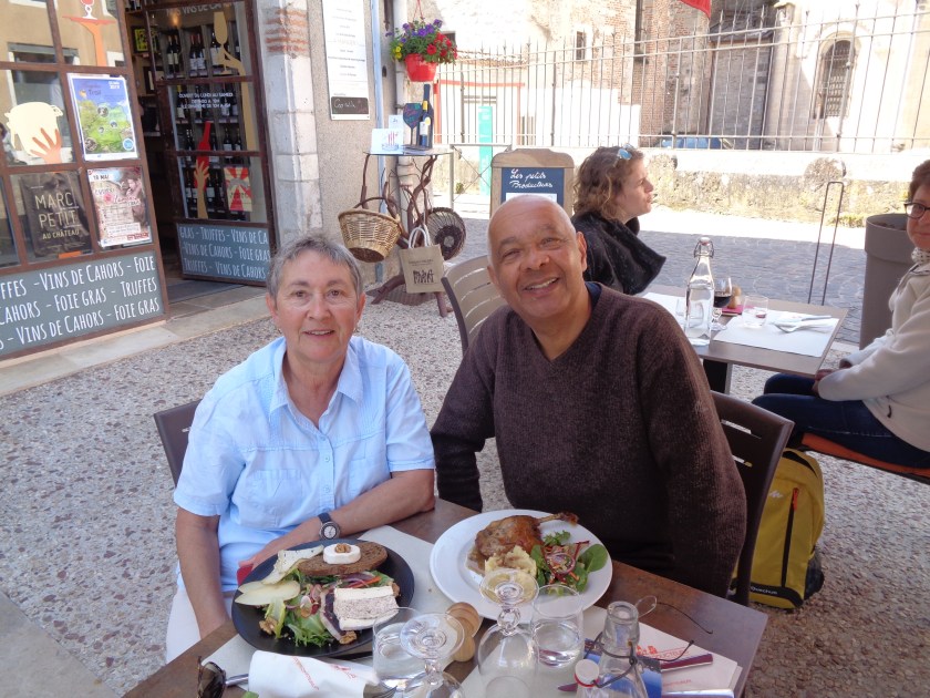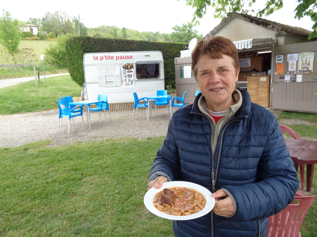 Moi qui m’étais promis de manger peu de viande pendant mon parcours, c’est raté!… Ce cassoulet sera cependant un admirable carburant sur le chemin qui monte abruptement vers Montcuq…