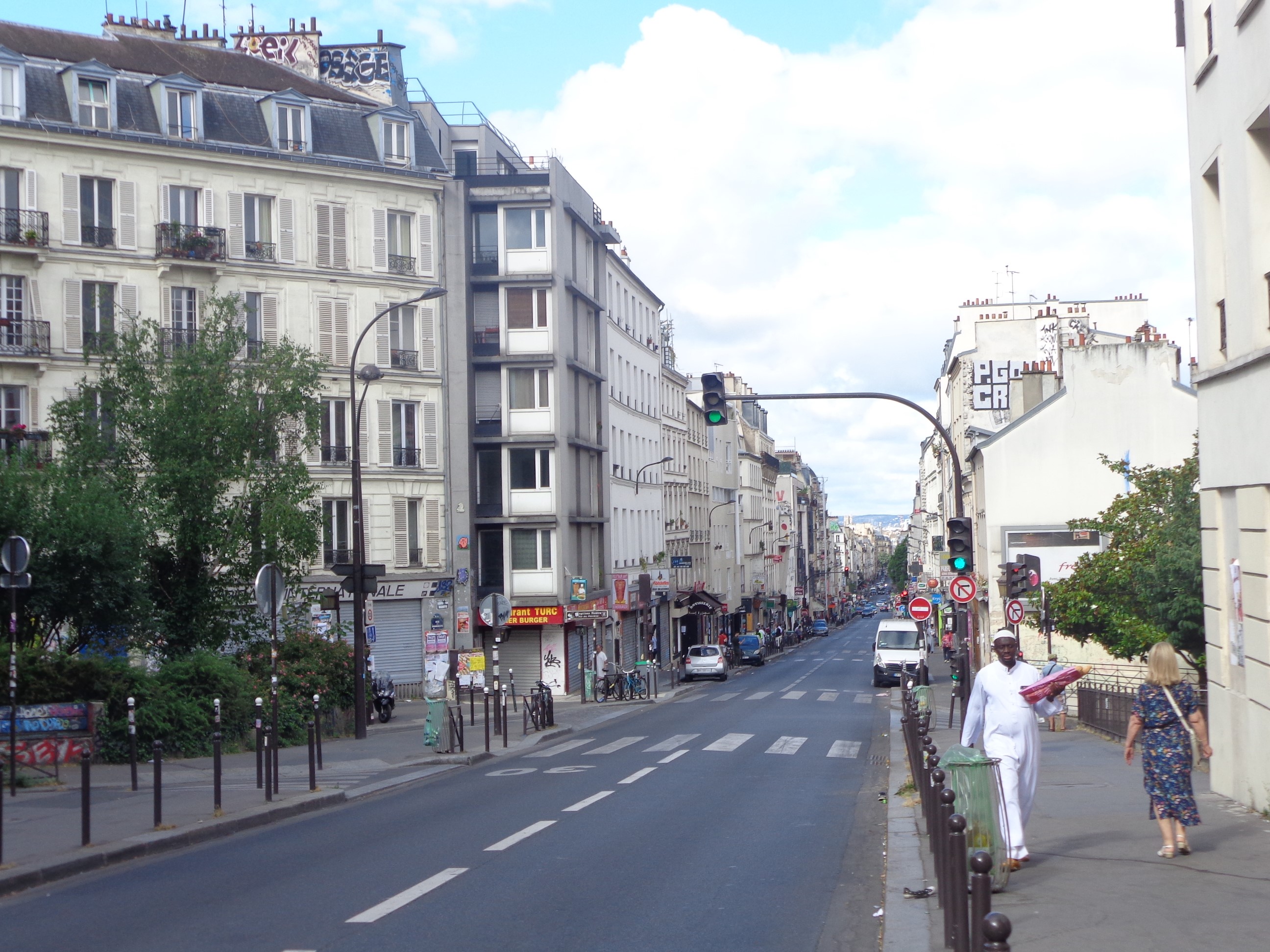 Du cimetière de Belleville (le point culminant de Paris avec Montmartre), rejoindre la station de métro Télégraphe et descendre la rue de Belleville jusqu’au boulevard de Belleville.